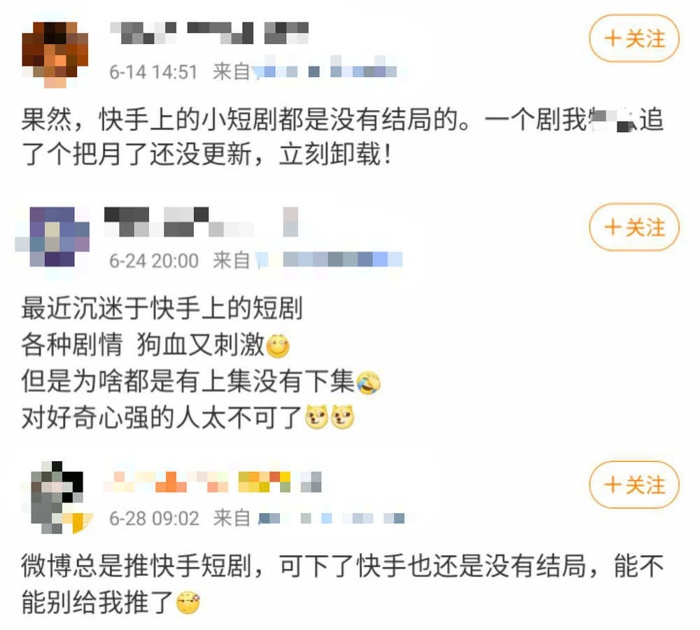 另外,没有结局也是很多短剧的通病,网友们对此也颇有微词。