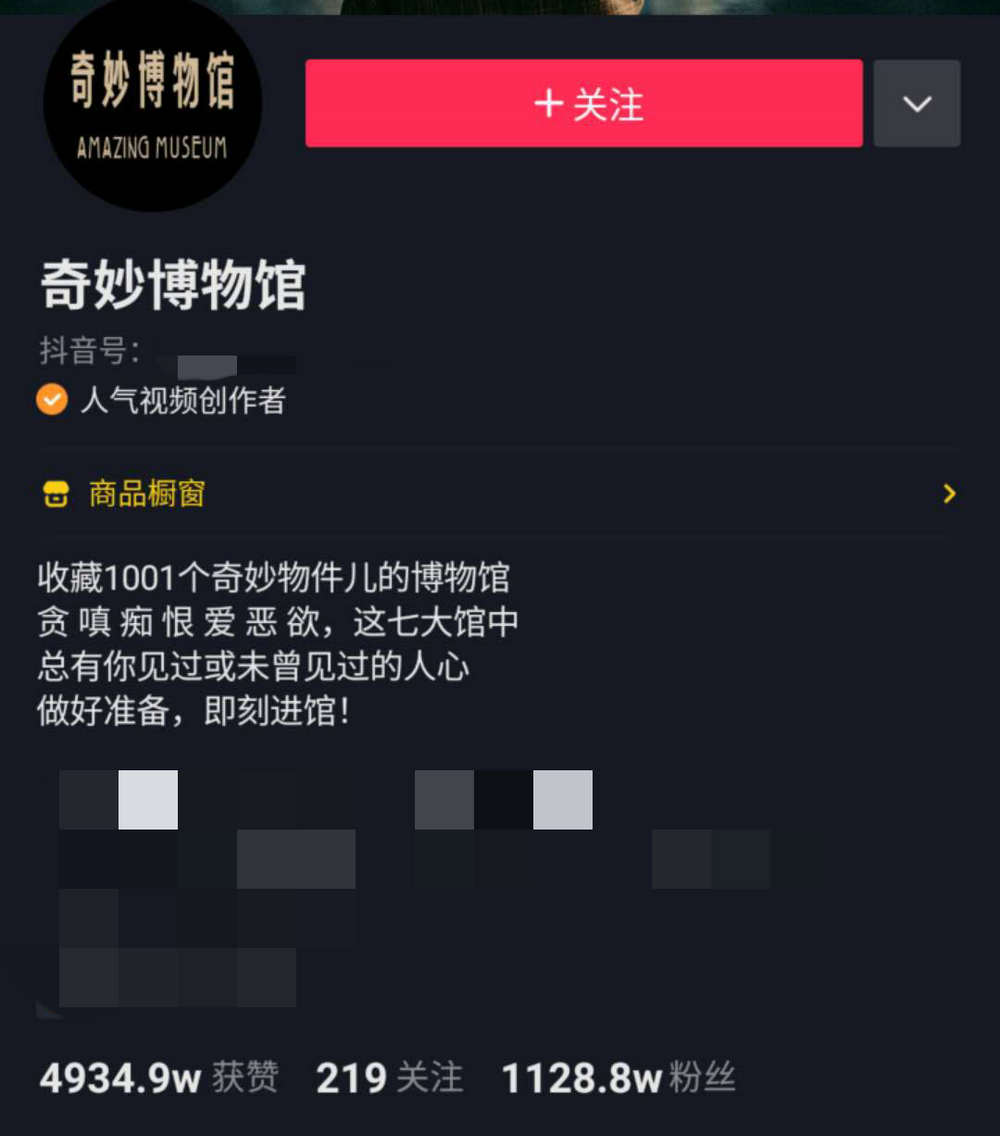 而凭借走心的选题,专业的拍摄手法以及演员的演技,《奇妙博物馆》圈了不少粉,目前在抖音上已有1128.8万人关注,累计获赞超4900万。