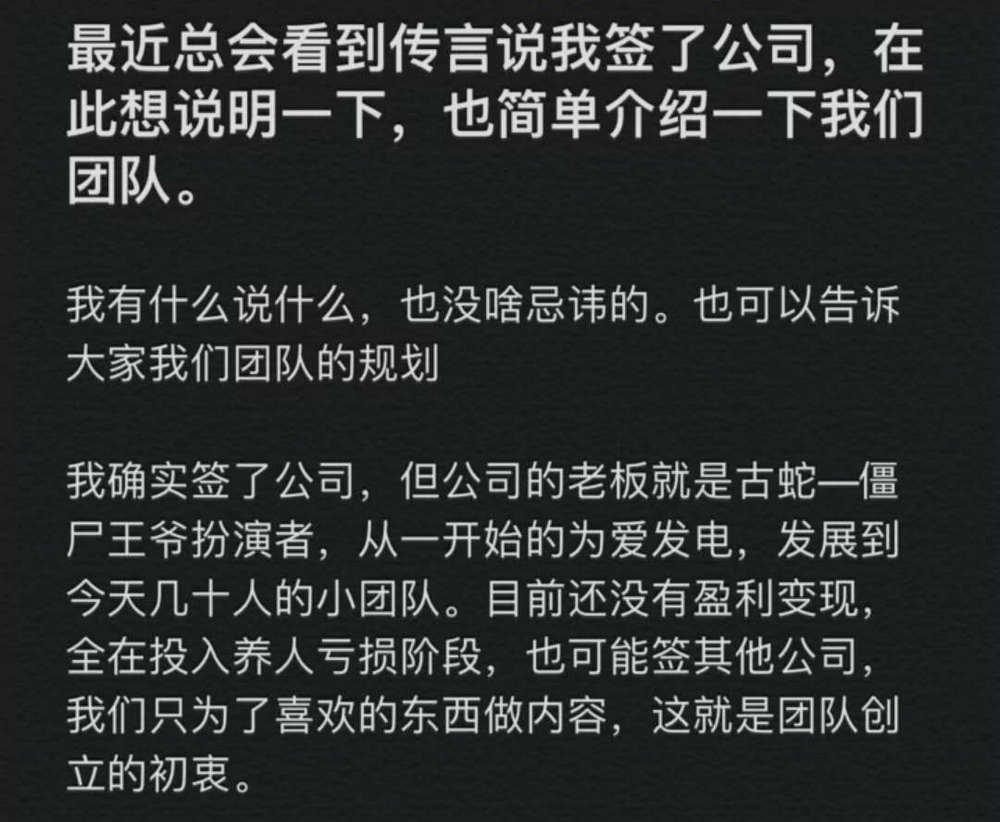 而快手号@凶残小白兔lilith(《我的僵尸王爷》视频发布账号)今年3月发布的一篇文章显示,他们的团队在当时还没有实现盈利,仍处于亏损状态。
