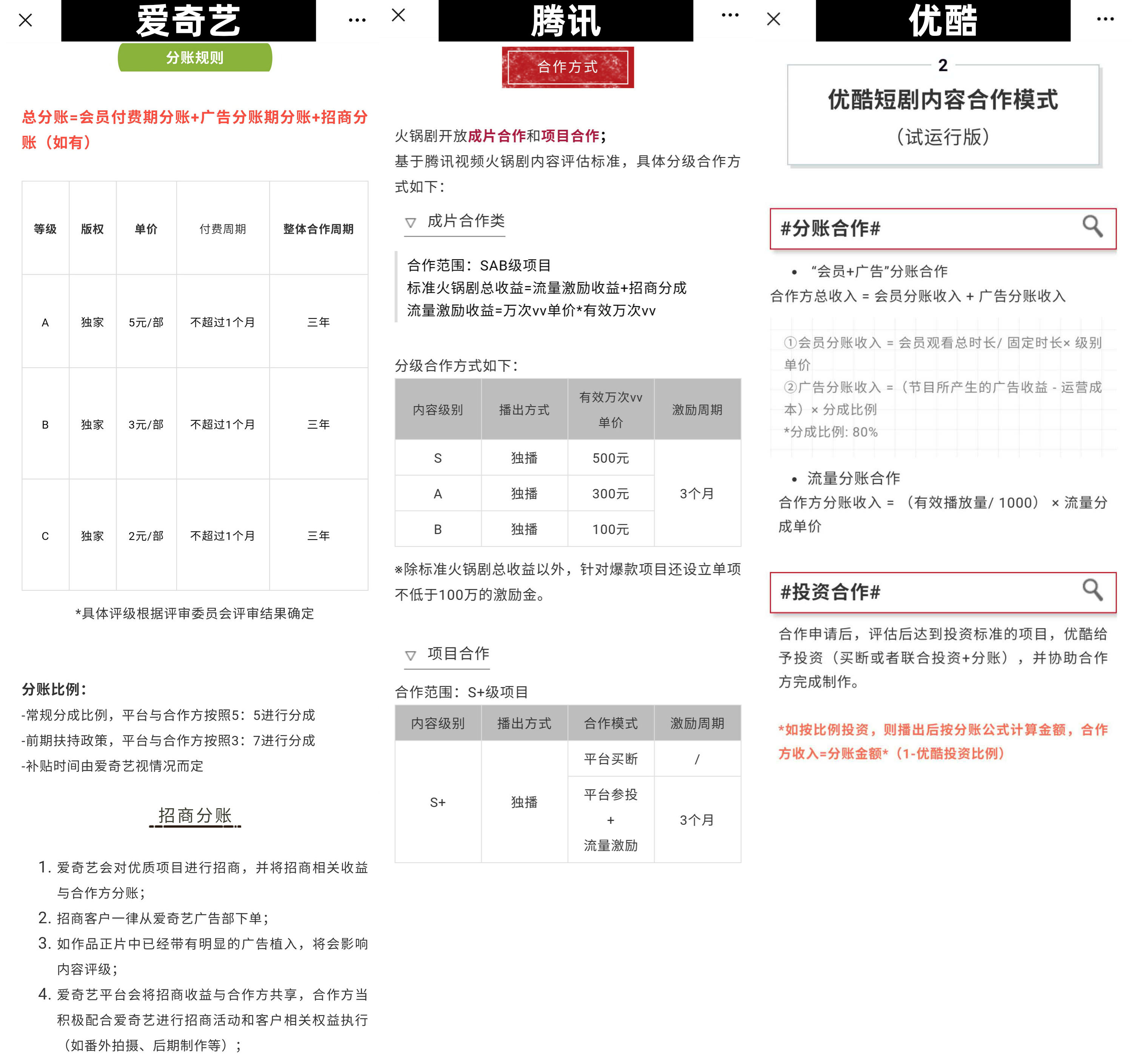 基于此,除抖音、快手等短视频平台外,不少传统视频平台也从去年开始先后推出“分账模式”,以鼓励创作、吸引优质内容。