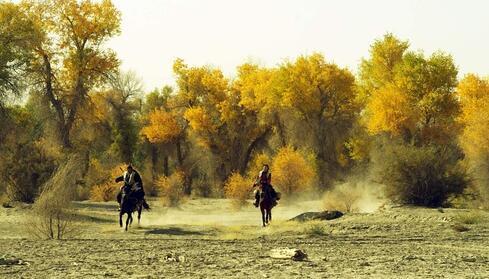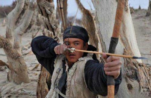 苍茫大漠,黄沙遍野,胡杨林在阳光的照射下,沧桑唯美却暗藏杀机。骆驼客将在此遭遇哈密快枪队,做殊死一搏。弓箭对子弹,究竟是选择忠诚还是背叛.....这是影片最后的场景。