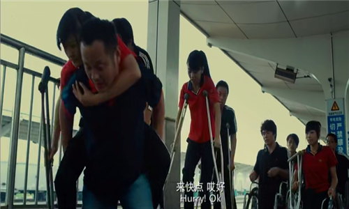 影片镜头都是写实的风格,有很多画面让人动容,比如孩子们对着爷爷电话那头的帮助机构齐声喊谢谢;看着他们坐在轮椅上挥舞着球拍从笨拙到熟练;走错站台的教练将孩子一个个被到车上去参加比赛。最后奥运拿到金牌回来的孩子们,推开门看到的是坐在轮椅的老人,老人已经不能言语但眼神充满热切的期盼和赞许,孩子们将一块块奖牌挂在老人脖子上,所有人眼含热泪,这一切来的太不容易。