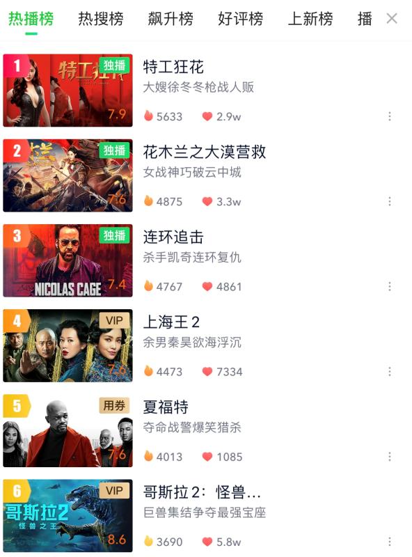 从七月到八月,因为疫情的好转,电影市场在逐渐解冻,特别是近日来一系列的院线电影屡破票房纪录,更是吸引了众多的眼光,但是在网络平台,网络电视剧和网络电影,虽然会被侵占许多的热度与关注度,依然有佳作迭出,比如刚刚上线的这部《特工狂花》,在爱奇艺的热度一路飙升,目前已经上升到爱奇艺电影的热度第一名,爱奇艺全网的热度第四名,这样的成绩,是对《特工狂花》这部作品所付出的努力与辛劳的最好回报,确实也让我们看到了网友们用点击量和观看量,来为作品打call的热情与真诚,好的作品,总是不会被埋没的,好的演员,也总是能够持续发光的。