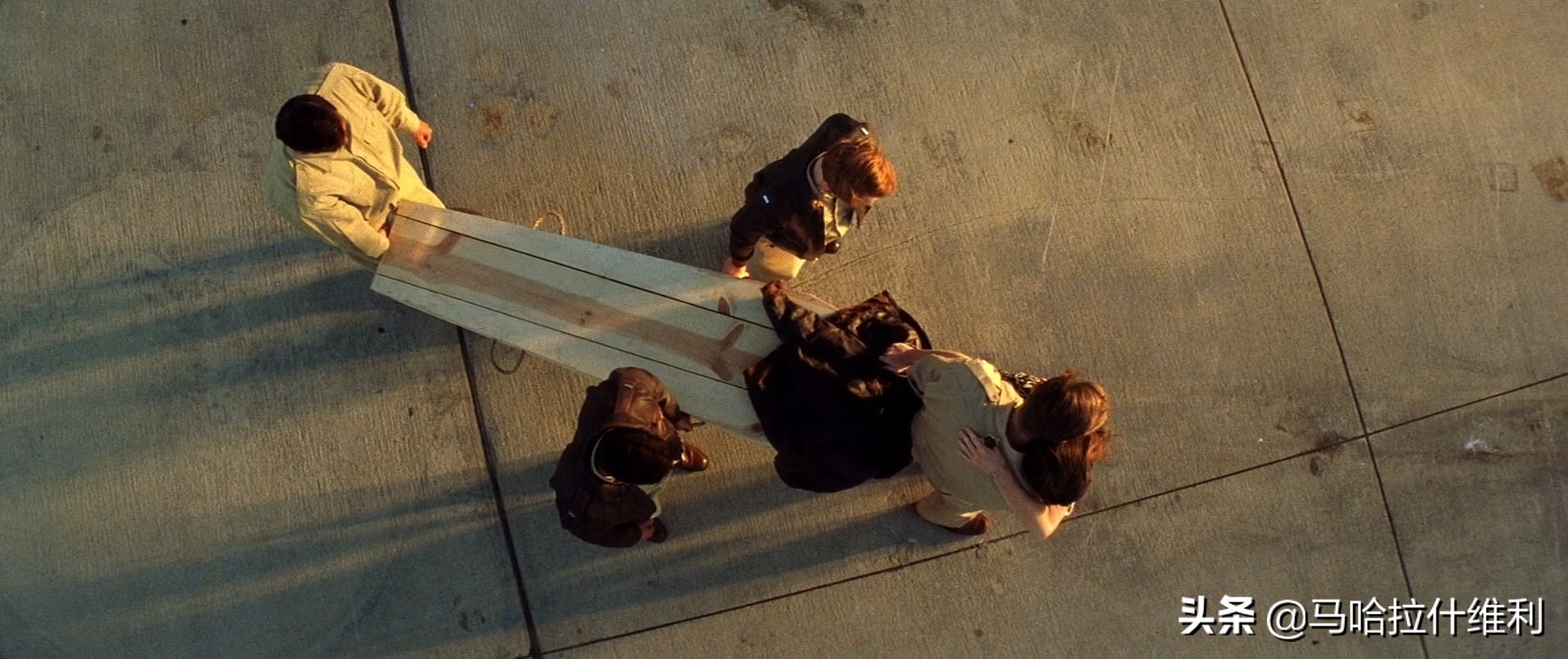 在画面主体不那么明晰的大场面中,摄影师多使用标准焦段的镜头。虽然它的视场与人眼近似,但依靠 2.40:1 的超宽画幅,此类焦段下的场景容纳量也不容小觑。少许镜头为航空俯拍的全景,用于场景转换。部分场景的叙事手法比较巧妙,多以小见大,以少胜多,以留白丰富想象。