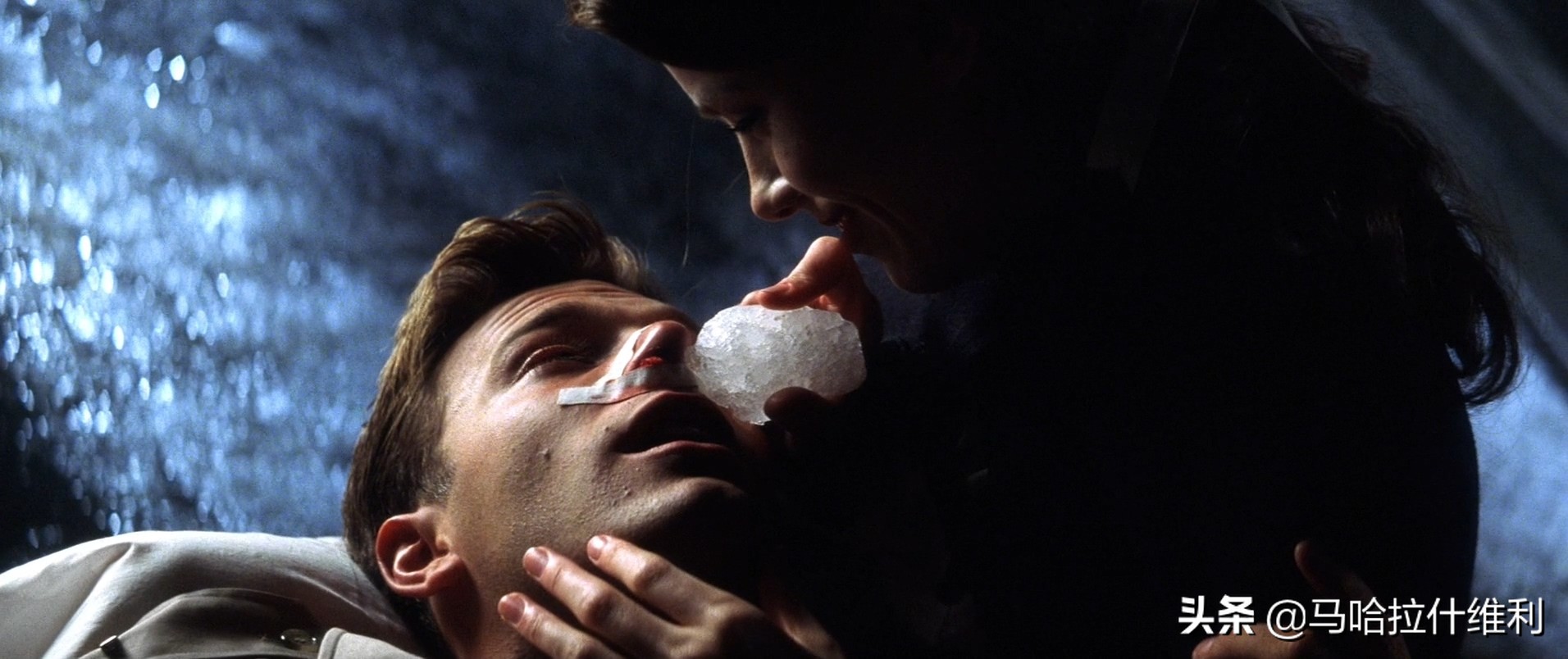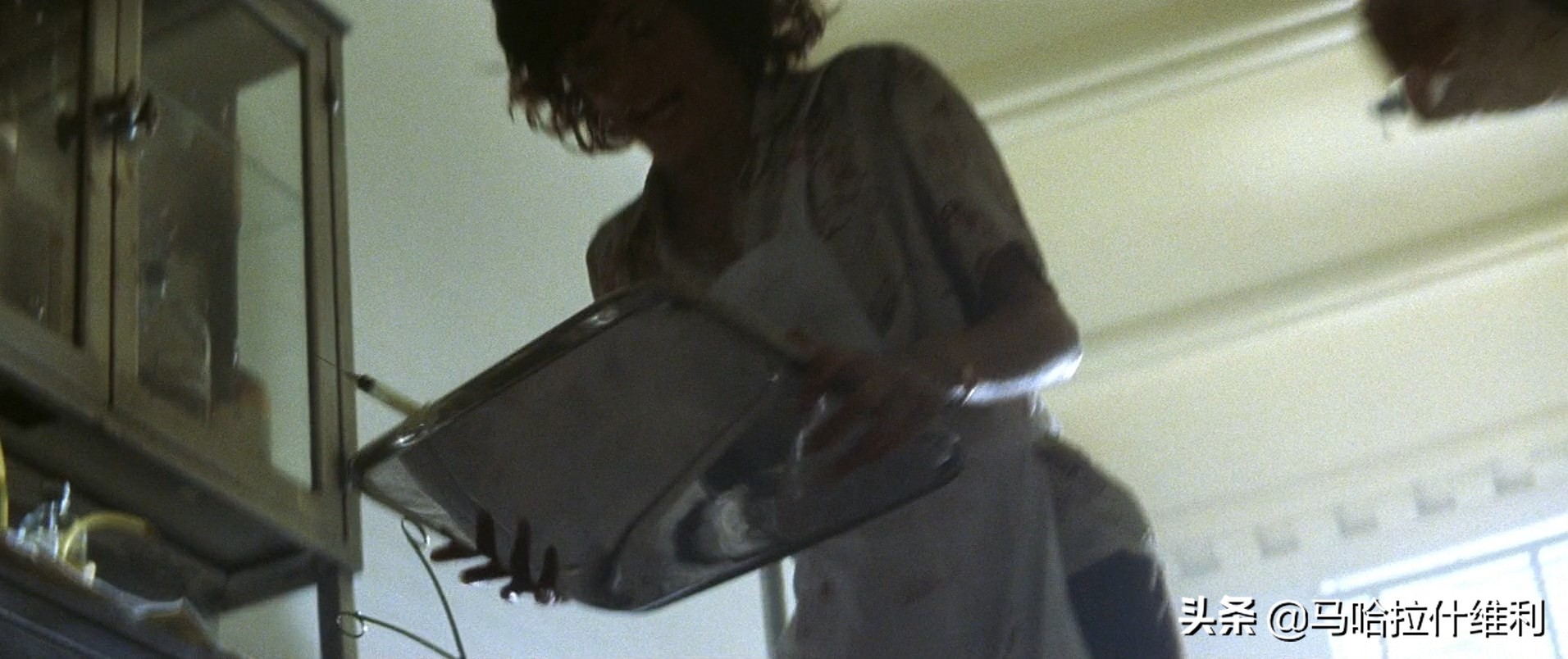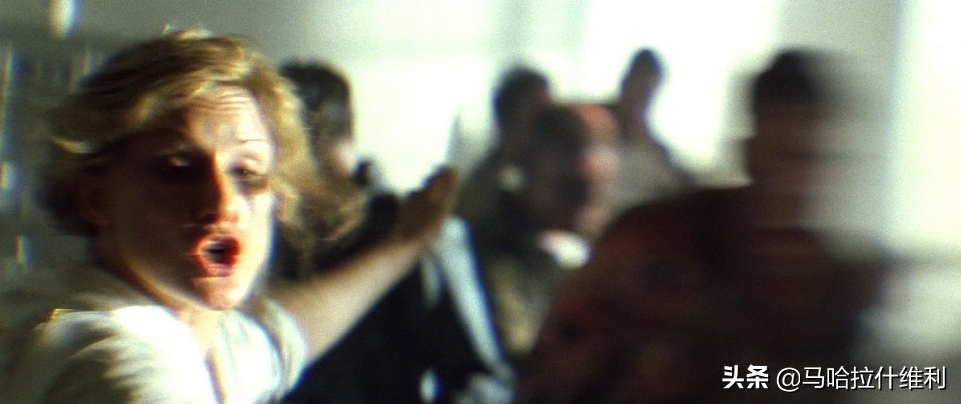 另外,在医院遇袭的场景中,后期团队也人为地制造了镜头扭曲和边缘模糊等滤镜效果,以模拟场景中人物触景生情而产生的眼泪和挥洒的血汗,当然尺度的把握值得商榷,我觉得稍微有些同情心泛滥的嫌疑。