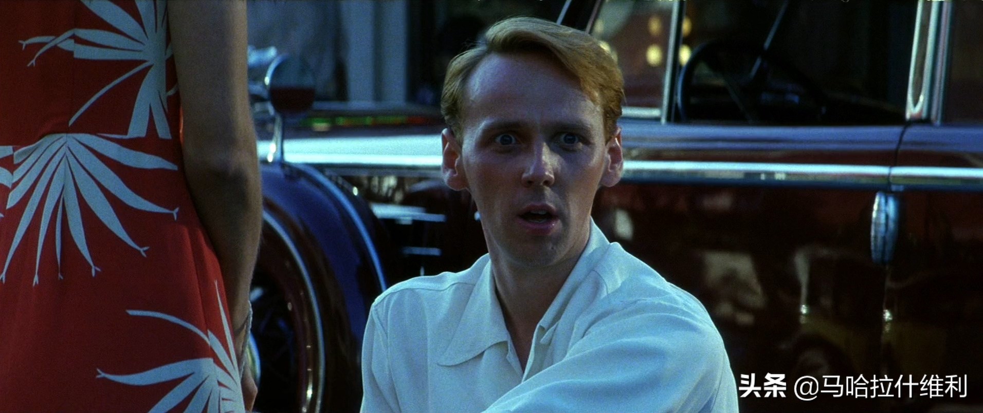 编剧和导演要传达出的意图是:丹尼和艾芙琳互有好感,但窗户纸并未捅破,两人的关系在雷夫的背后偷偷稳步推进,同时进一步强化丹尼的腼腆性格。但是哈奈特在仍然丹尼之时,仍然缺少力量和手段。如果要呈现较为尴尬的氛围和暧昧的情感关系,除了流畅的表演“些许口吃”和眼神闪躲是不够的。当然,哈奈特在肢体上强迫自己没话找话,他也尝试在谈话遇冷时强迫自己重新升温,但是相关的表演分寸仍然幅度较小,这就使得这一段戏的功能作用只是在叙事上较好的完成,却在效果和感受层面大打折扣。两人同时说话/同时静止、丹尼真实的口吃与叹气、流露紧张情绪且不可控制的重复性肢体活动等手段,都可以在技法上为这段表演添光加彩,但呈现效果并不理想。