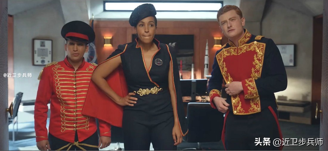 再比如剧中第一夫人设计的太空军军服,仔细观察的话,你会发现这几种样式带有鲜明的沙皇军队和现代俄罗斯军礼服的风格,应该是调侃特朗普的通俄门,也没有点明。