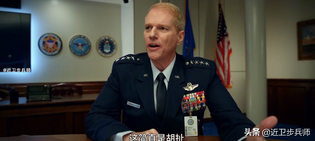其实剧中主角内尔德将军的军服也是有问题的,现实中的美国空军穿淡蓝色衬衫,目前太空军也是,但是主角一直穿着深色衬衫,领花也不是us(美国)。