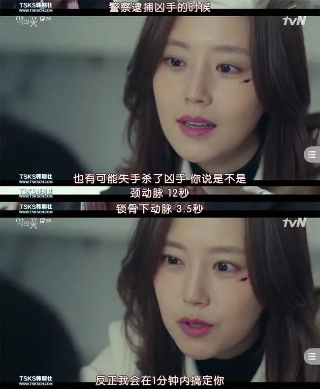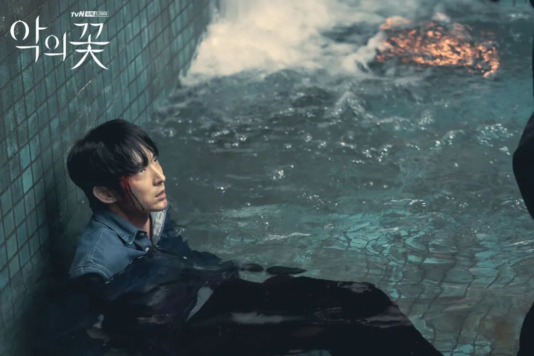 在囚禁淹水的重头戏中,出租司机地址被查到,特警赶过来打倒他,还受了重伤。文彩元为救李准基在水下热吻,后面复仇司机也死在医院,故事在惊险刺激与甜蜜撒糖中游刃有余地穿梭,虽有离谱之处,但流畅叙事还是很有亮点。