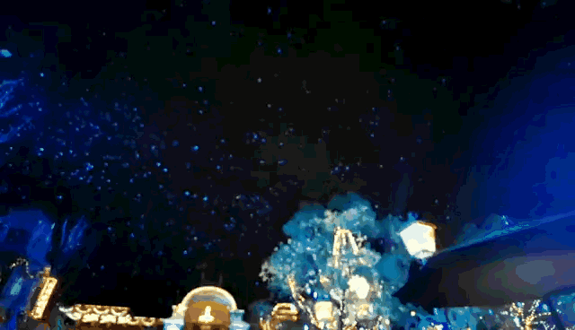 8点半的时候,烟花在城堡的上空闪闪烁,烟火划破天空为夜幕添上颜色的轰鸣,像极了会灰姑娘里午夜的钟声。