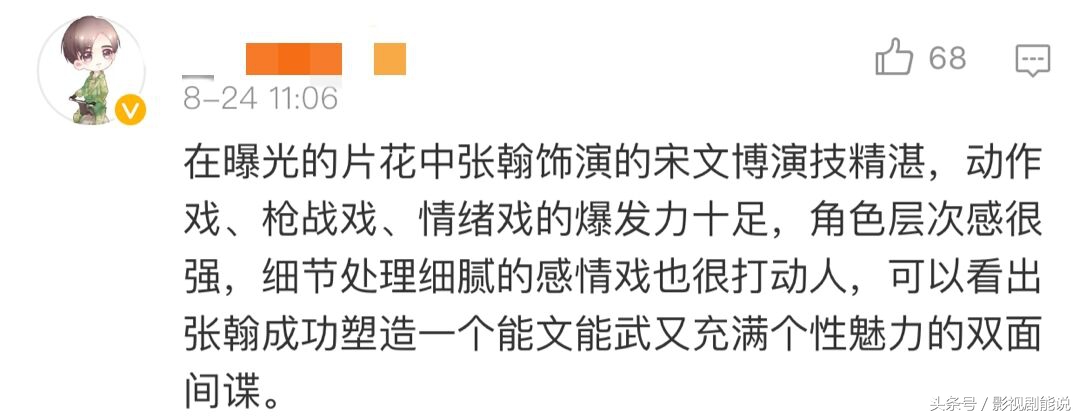 之前《战狼2》采访的时候张翰好像也有说过自己要转型了,他抛弃总演现代装的霸道总裁设定之后,单看演技还是有的,而且说是演“双面间谍”,感觉剧情应该也会挺有意思的,总的来说,我对这部剧还是有点期待的。
