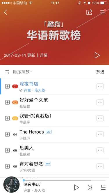 不得不说,我们许嵩每次创作出来的新歌都是这么火,《深夜书店》也是3月14日发布没多久,就占领了酷狗音乐“华语新歌榜”榜首的位置。