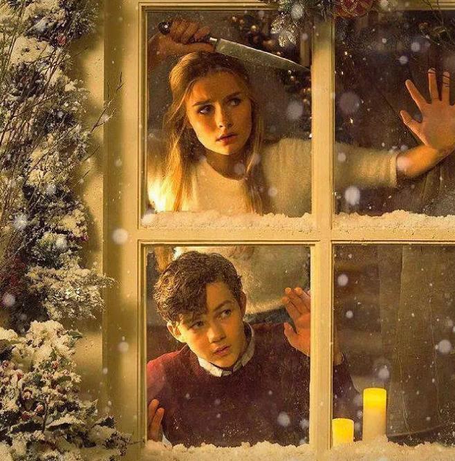 同样是父母出门,孩子与保姆单独相处的设定。以为小男孩睡了,保姆召集了一帮人来家里进行祭祀。男主被发现后,当然是捆绑,谈判,恐吓,逃跑,追逐一系列戏码。