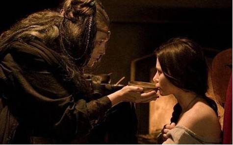 (老女巫“帮助”伊丽莎白恢复青春。图片来源:电影《吸血女伯爵》截图)