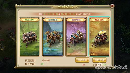 另外押镖护送也是能够得到大量的银两的,所以只要多护送几个橙色的镖车,那就可以获得很多的银两了,这样也就能够对装备进行升级、强化了。