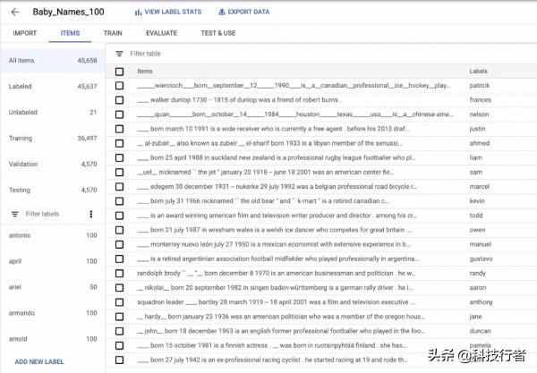 我将数据集上传至automl,由其将数据集自动拆分为36497个训练示例,4570个验证示例,以及4570个测试示例: