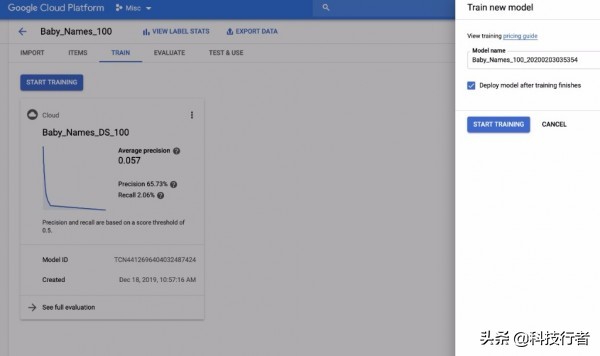 为了训练模型,我访问train选项卡,并点击start training。在四个小时之后,训练宣告完成。