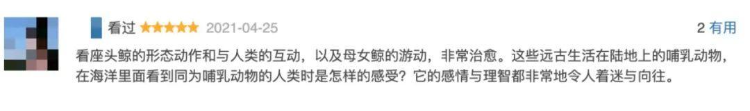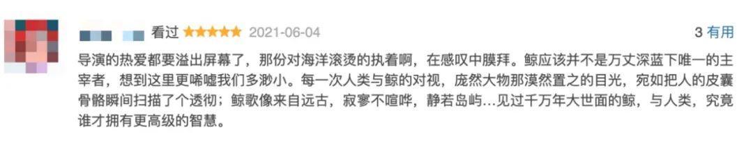 他对于这些海中巨兽发自内心的热爱,是这个纪录片中除了巨兽之外,最能打动观众的东西。