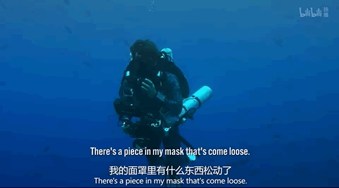 为了水下拍摄,帕特里克佩戴了全脸循环呼吸器。
