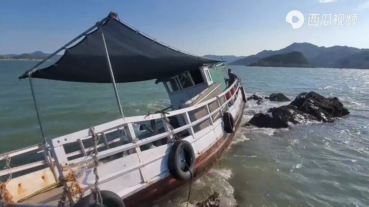 在5月23日那期视频里,因为我少绑了一个船锚,风浪直接把渔船拍到了礁石上面。当时刚好是退潮时间,海水会越来越少,渔船被拍到礁石上,根本就出不来,还很容易翻没。其他几人和我老婆村花只能先下船,站在孤岛上眼巴巴地看着渔船被海浪拍打,疯狂地摇摆。