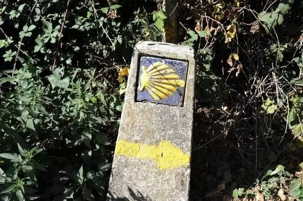 圣地亚哥之路的标志也是指路明灯。在朝圣之路上一直都会有贝壳的路标来指引你方向,这种贝壳标记通常会出现在石头,建筑物的墙壁上。如果遇到岔路口没有路标的情况,就找找看有没有黄色油漆的箭头,有些时候指引方向的不是贝壳而是箭头。此外,在背包上挂一个贝壳挂饰,这样在路上会更容易得到帮助,比如可以在教堂里免费借宿,偶尔吃到免费的午餐。
