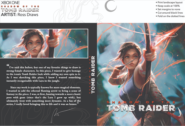 今年是《古墓丽影》问世25周年纪念,官方在十月曾举办了系列周年庆典活动,还在上个月分享了《古墓丽影:崛起》的开发设定资料。而在本月,官方将分享三款经过重新构思的封面,首个得到重绘版封面的游戏是《古墓丽影:暗影》,玩家可以自行下载打印放在实体版ps4和xbox的光盘盒子上