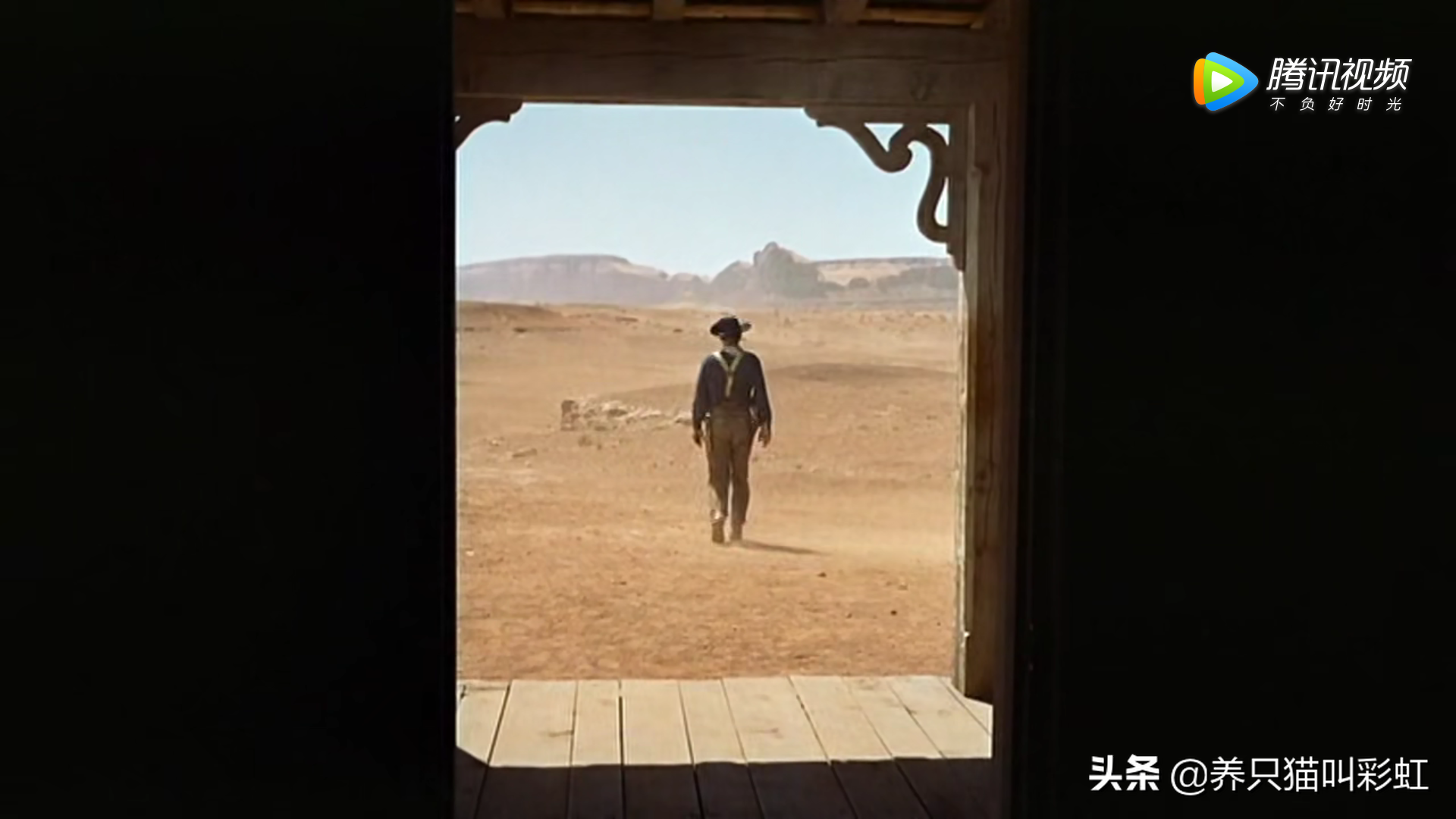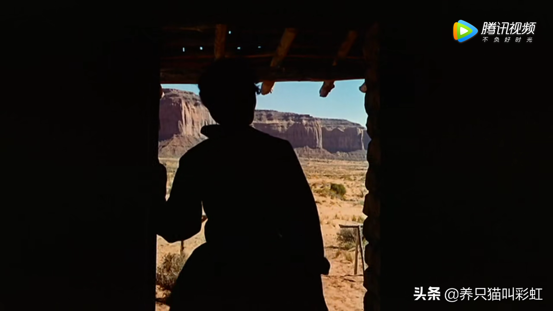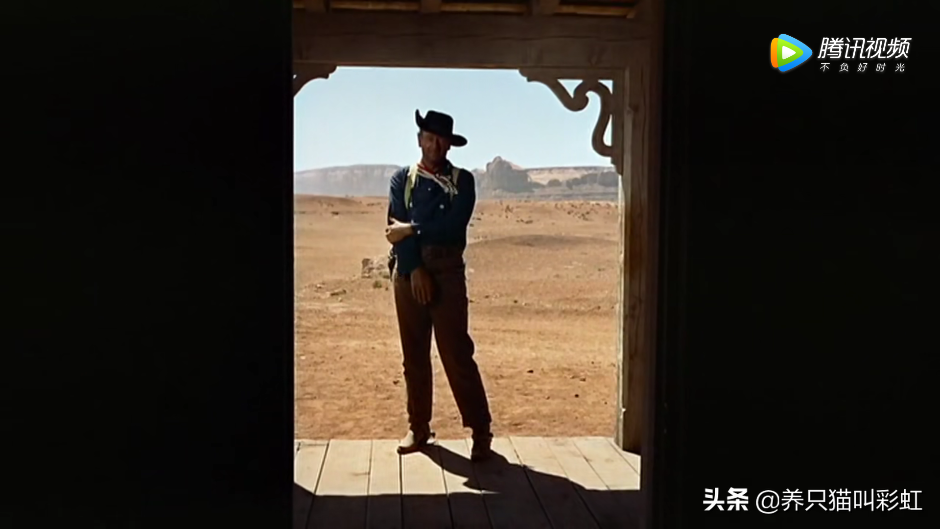 《搜索者》的导演约翰·福特则深谙此道,令人兴奋的西部景色,苍茫荒芜的戈壁沙滩,远处地平线上骑马飞驰的牛仔,使观众内心澎湃,仿佛置身于西部现场。这部斩获奥斯卡大奖,被称为福特最具代表性的西部片,在我看来,每一幕的取景结构更是精妙无比。接下来,我将从景框中内容置位的不同来引申导演想要传达的意义。