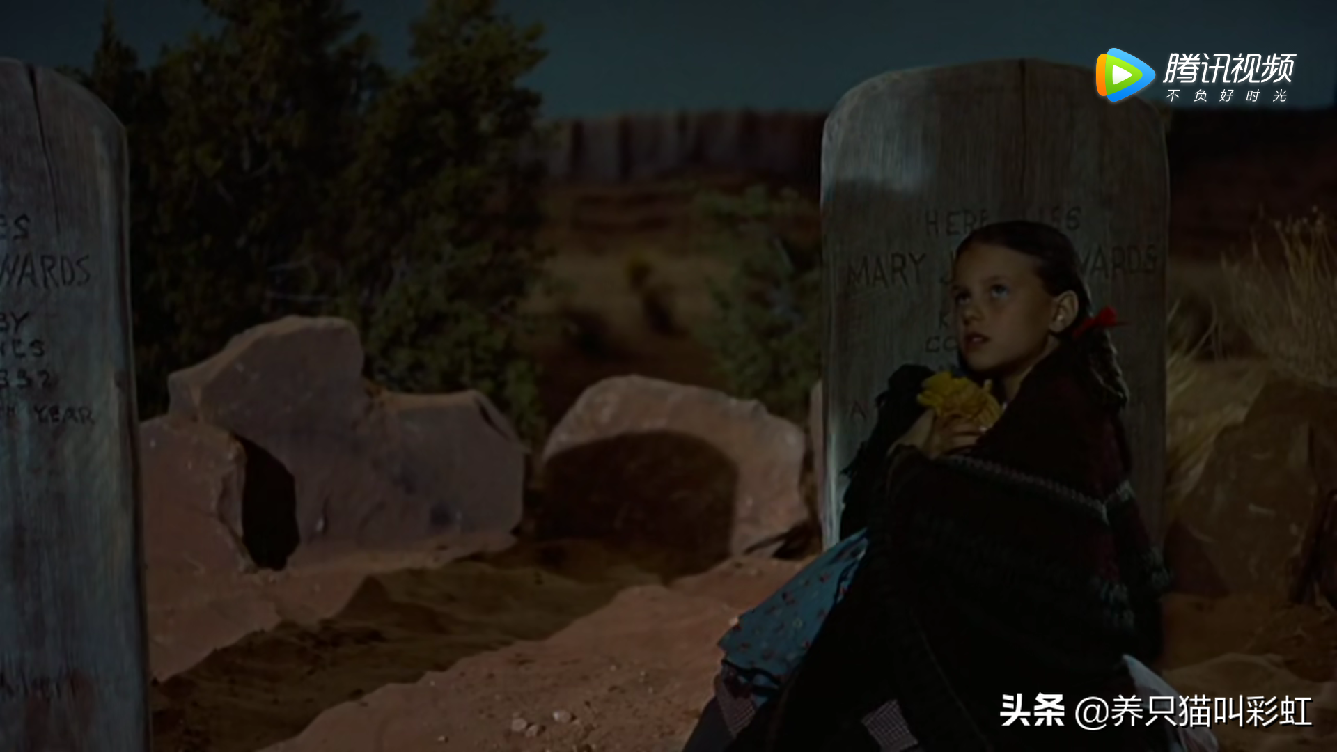 - 景框的下部,则代表着服从、脆弱、无力。整个镜头的基调颜色为冷色系,强调了阴森恐怖的氛围,同时为黛比的失踪打下了伏笔。此时导演将她放置于景框的右下角,未知的角色与墓碑占据画面的大部分,代表着“危险”,也代表着被画面中的主体所支配。