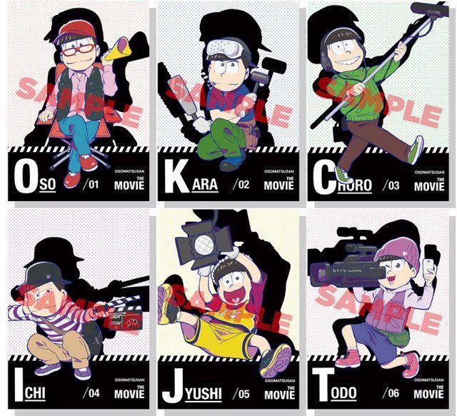动画《阿松》推出的完全新作剧场版动画名为《电影的阿松(原名:えいがのおそ松さん)》,由担任角色设计的浅野直之绘制的宣传视觉图中可以看到拿着场记板和照相机,在聚光灯下化身为电影拍摄工作人员的阿松六子。据悉,《阿松》大电影将以阿松6子去参加高中同学会的全新故事展开,老大小松(cv:樱井孝宏)也对剧场版进行了一番妄想,洋洋得意地说:“这样我们就会超级受欢迎了。”