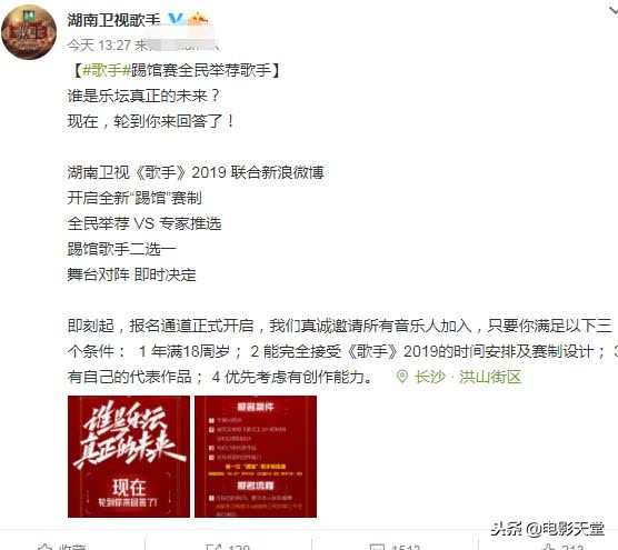 首发歌手阵容已出,大家最关心的自然是补位歌手和踢馆歌手,毕竟这是一档比赛类节目总要不断的淘汰人啊。节目官微也已经宣布了新赛制,这次的踢馆歌手只要满足条件均可自己报名,然后通过投票的方式选出。