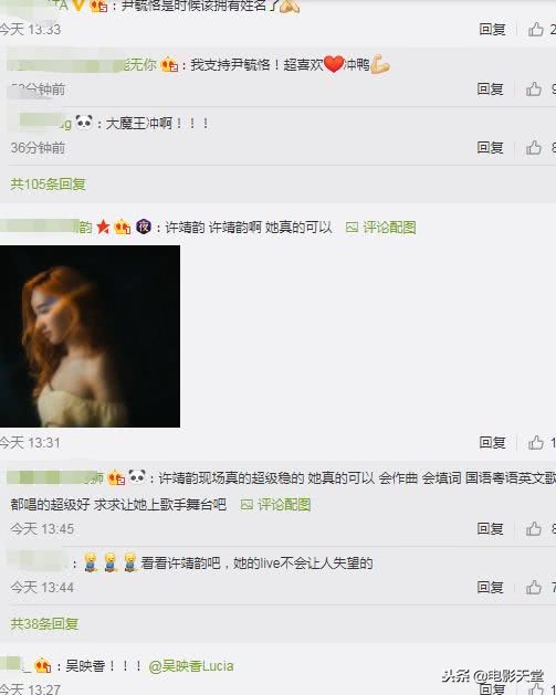 官微评论区也全是粉丝的推荐时间。尹毓恪、许靖韵、吴映香等人都被网友们推荐了。
