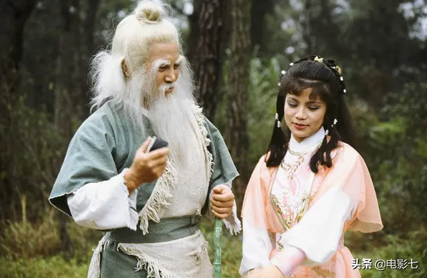 他总共演了四次洪七公,白发白须青衫翠杖、慈祥与威严兼备的形象,最为深入人心。