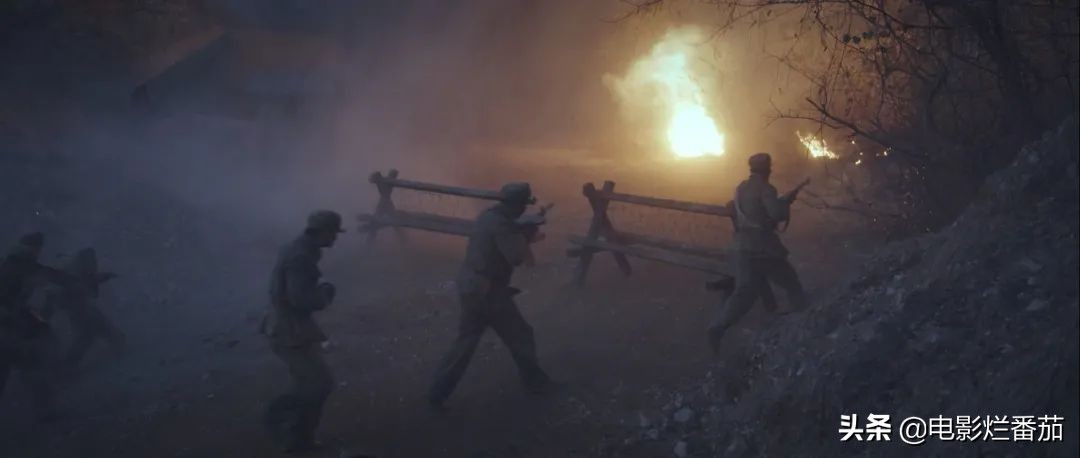 在受到突然攻击时,美军和志愿军都呈现出手忙脚乱的一面倒劣势,这跟导演对于镜头的掌控有关。