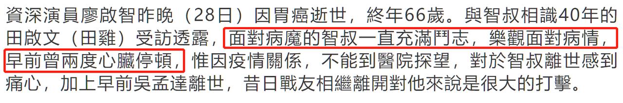 从确诊胃癌到去世,廖启智仅仅只有3个月的时间,一切都是那么突然。