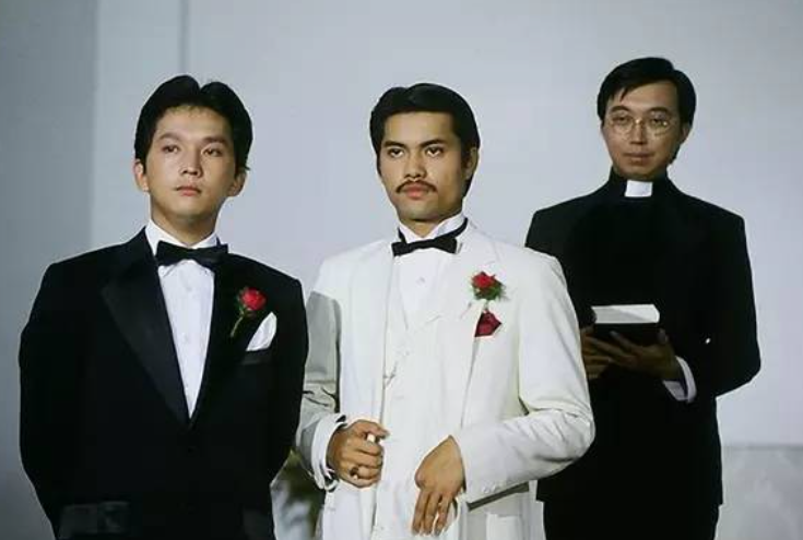 彼时的吕良伟长相还不算好看,因为脸庞太过瘦削,反而没有身边的祥贵看起来顺眼。
