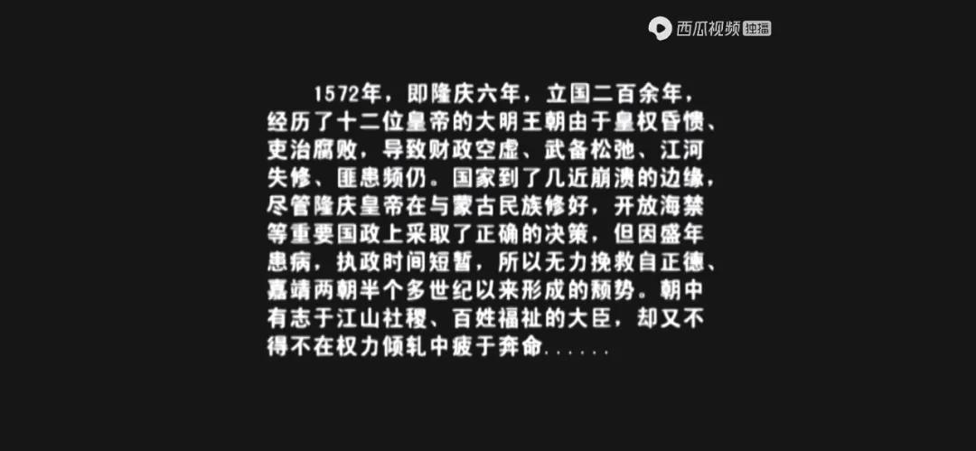张居正做官,横跨了嘉靖、隆庆、万历三朝。那么这部剧开场时的隆庆王朝是不是一个清明的时代?答案是否定的,这是一个“遍地英雄做渔翁”的时代。