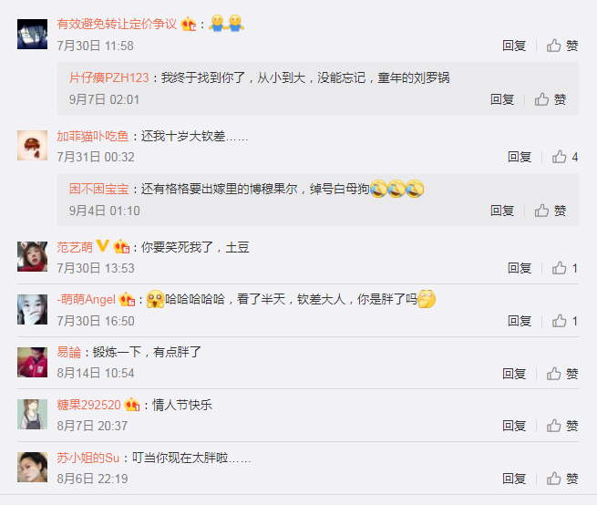 对于谢昀杉出演的新电影《战修罗》,网友纷纷表示:“还我十岁大钦差。”“你要笑死我了,土豆.”“锻炼一下,有点胖了。”“看了半天,钦差大人,你是胖了吗?”“明明小时候那么可爱的。”“叮当你现在太胖啦!”“弟啊,看的我想笑啊!你演反派是为了娱乐我们吗?”“当当啊,像一颗小土豆,一点也不像反派。”“长残了,还是小时候的你好看。”“怎么胖这样啦,抓紧帅回来。”“亲爱的。今天突然又看见了你,咱能不能减减肥,你还是我童年的男神吗?咱好歹也是90后,还是小鲜肉呢!”“看我口型:减肥啊!”