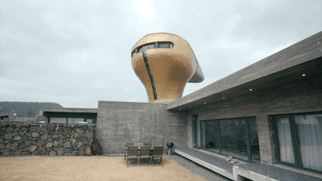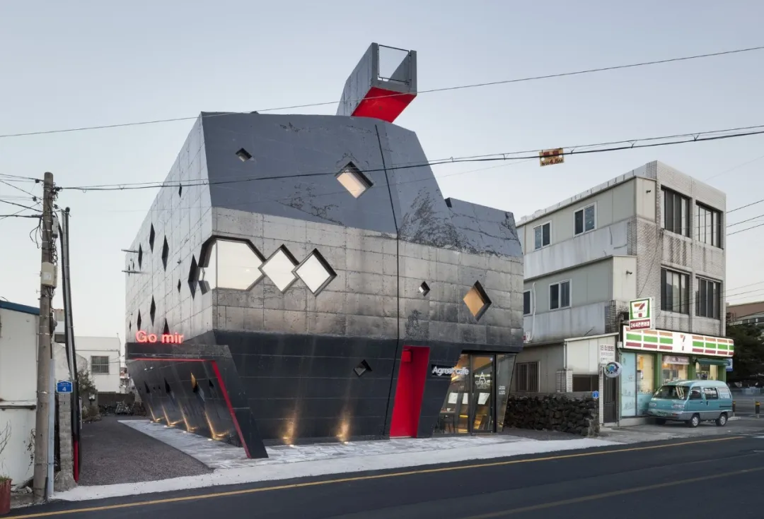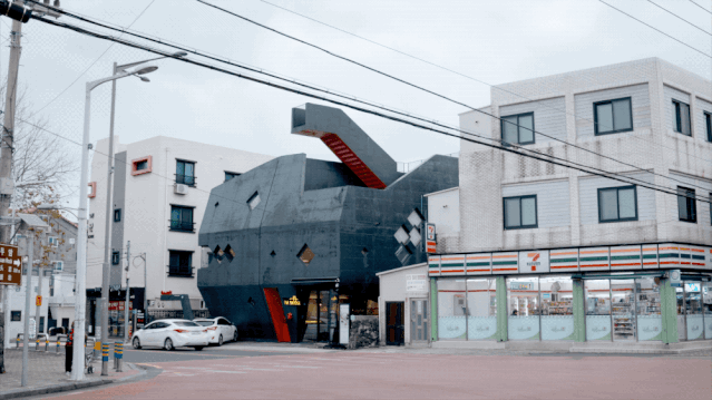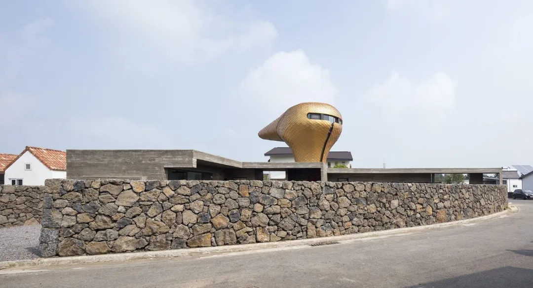 014年,moon叔在济州岛上游客更密集的市中心,造了个张牙舞爪、咆哮中怪兽模样的小客栈,叫go. mir(“龙头屋”)。go是房子主人的姓,mir在韩语中是龙的意思。
