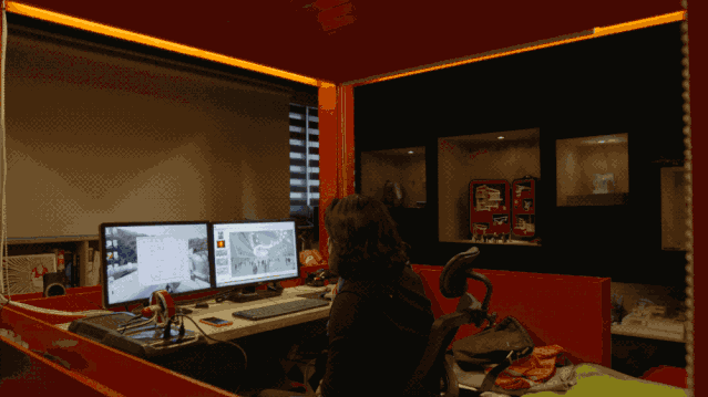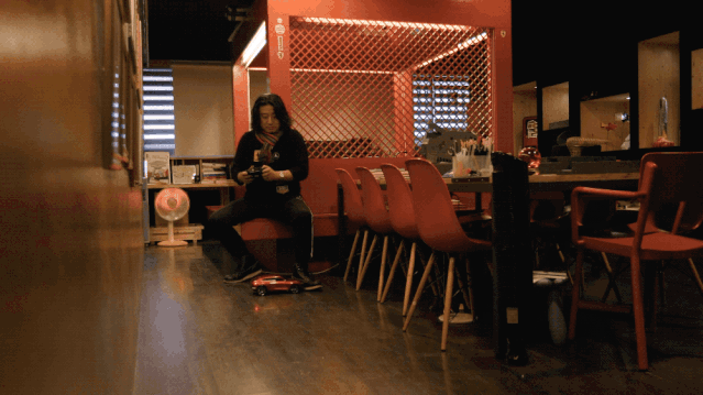 房间当中的方盒子是工作台,是moon叔操控自己整间“工作室飞船”的驾驶舱,画设计图只是他在这里生活的一小部分,余下的大把时间用来玩遥控车、看电影、看书,甚至放空自己和睡觉。