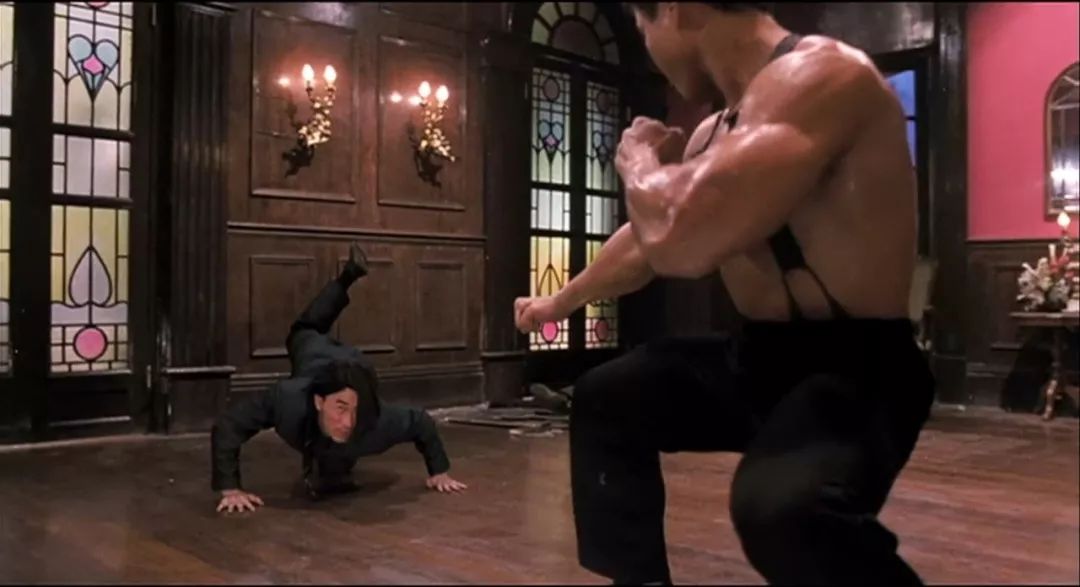 1988年成龙在《飞龙猛将》中的这个超炫旋风踢,就是钱嘉乐做的替身。