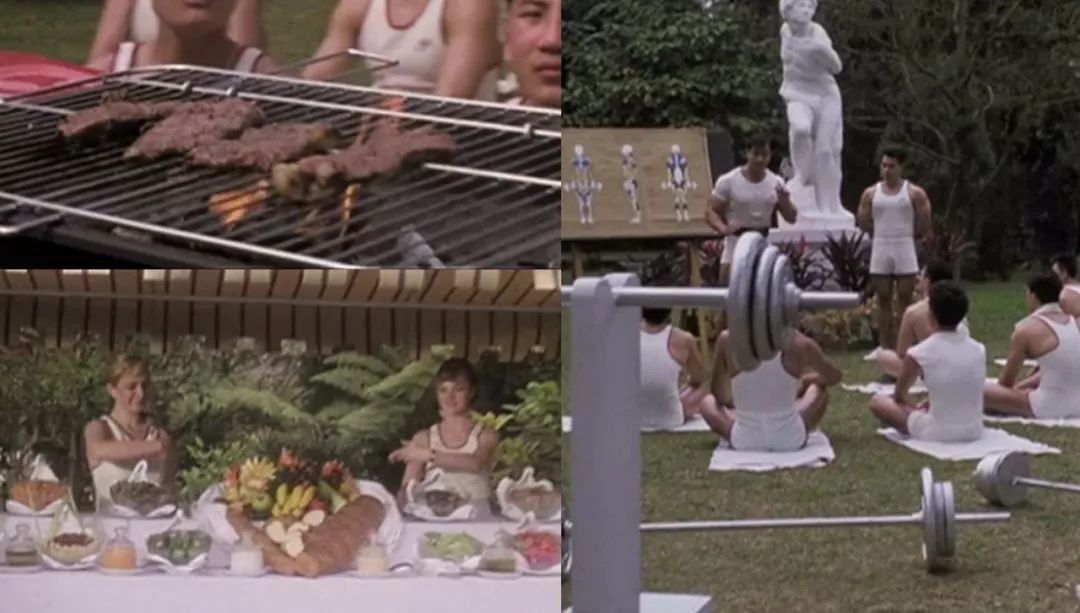 而片中还加入了由陈治良传授的健身方式和西洋拳法,其中更细致讲解了饮食方面应该讲究的地方和营养均衡的重要性,包括用来补充蛋白质的牛肉和补充维生素和纤维素的蔬菜水果,这些也成了皮哥小时候的健身启蒙。