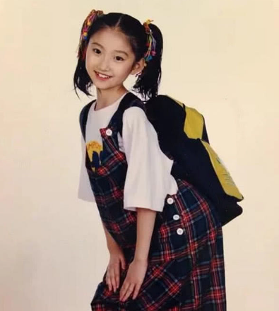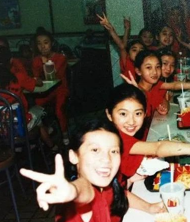 小时候的景甜便娇憨可爱、气质不俗,10岁时就曾被选中夹道欢迎克林顿,在众多小妞中非常抢眼。
