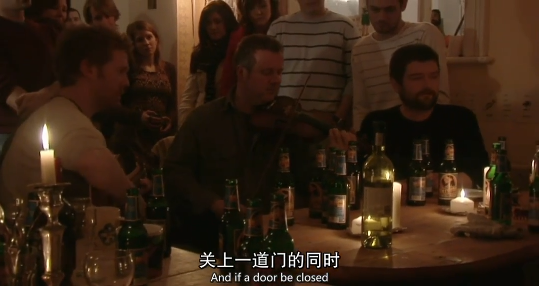 他们来到一场音乐派对,晚饭后,人们纷纷开始唱歌。