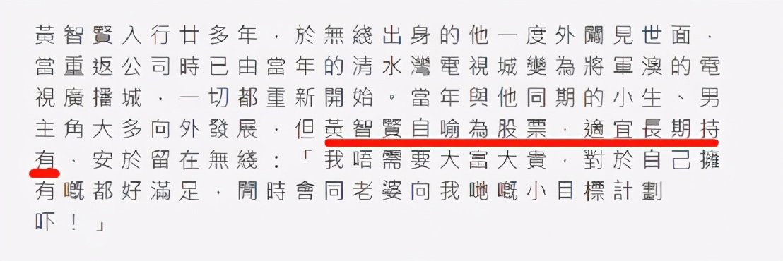 虽然黄智贤总在主角和配角之间徘徊,不过他坦言自己看待演戏早就没有了所谓的主配之分,还自封为股票型演员,称自己适合长期持有。