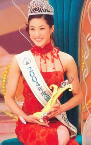 2004年,20岁的她一举拿下国际华裔小姐冠军,成功与tvb签约,第一部剧就是《皆大欢喜》。