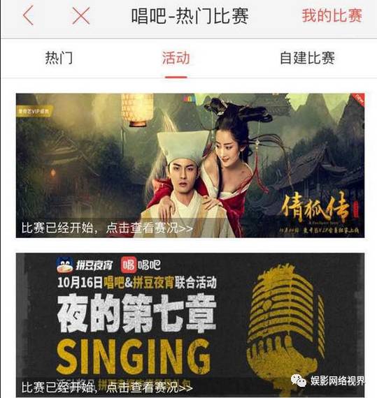 在音乐类app“唱吧”上举办“倩狐传主题曲《相思在》歌唱大赛”;