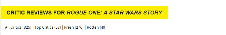 《侠盗一号》没有一丁点成为优秀影片的机会:它只在无力地叙事确保剧情能够无缝连接,好像这片子的结局是有意义的一样。——《日本时报》james hadfield