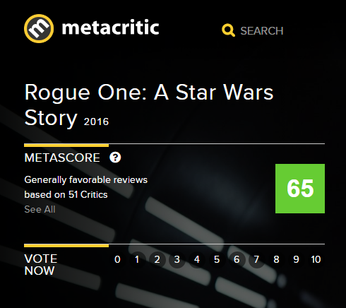 国外知名评论网站metacritic目前已收录51家媒体评论,35个好评,13个中评,3个差评,综合分数65,相比较于去年上映的《星球大战7:原力觉醒》获得81的分数,可以看到二者在评分上还有一些差距。