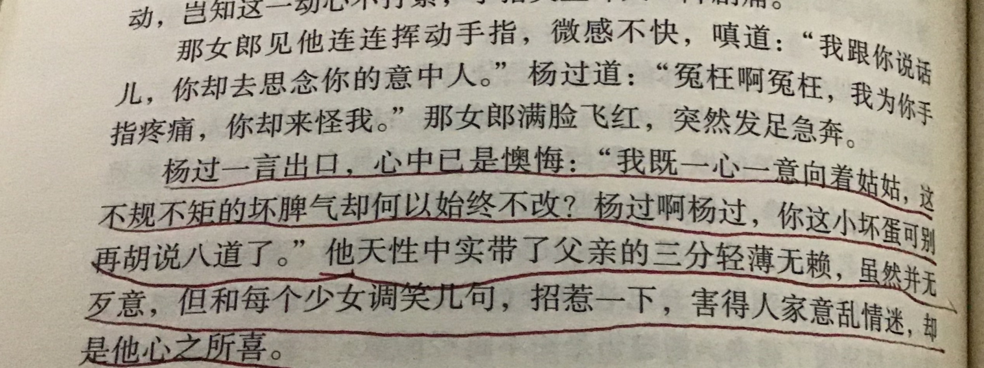 20年前读金庸,虽然觉得杨过和陆无双很是暧昧,对于他亲吻完颜萍的行为也很是震惊,但主角光环在那里,便完全忽略了这些细节,只觉得他和小龙女的爱情可歌可泣,只觉得杨过此人,最是至情至性。