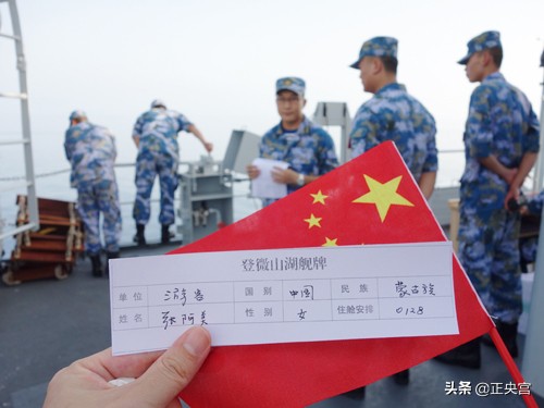 军舰就是流动的国土。当我们登上微山湖号的一刹那,真的有种恍如隔世的感觉,热情的官兵和整洁的舰上环境都让人有种回家的感觉,我们每个人手里都紧紧攥着一面小小的五星红旗,以前从未觉得它竟这样美丽。